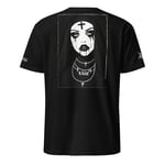 This black slim-fit softstyle T-shirt impresses with its clean look and bold statement. The fabric feels high-quality, soft, and retains its shape – ideal for everyday wear without losing its structure. The deep black color is rich and even, making the high-contrast print stand out exceptionally clearly. The highlight is the large back print: a monochrome, highly detailed, gothic-style design with sharp lines and a strong visual impact. The "fuck that they think" lettering on the sleeves is subtle yet striking. The cut is relaxed and modern, and the high collar creates a distinctive silhouette. A minimalist shirt with maximum presence – for streetwear that gets noticed without being loud.